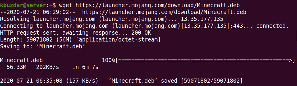 The first step will be to download the Minecraft .deb package on our system. To do so, launch the command line Terminal using the Ctrl+Alt+T keyboard shortcut and then issue the following command in Terminal: