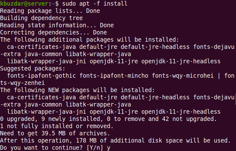 After running the above command, the system might ask for confirmation that if you want to continue the installation or not. Press y to continue; after that, the required packages will be installed on your system.