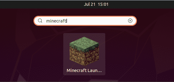 To launch Minecraft from application launcher, hit the super key on your keyboard and type minecraft. When the search result appears, click on the Minecraft icon to launch it.
