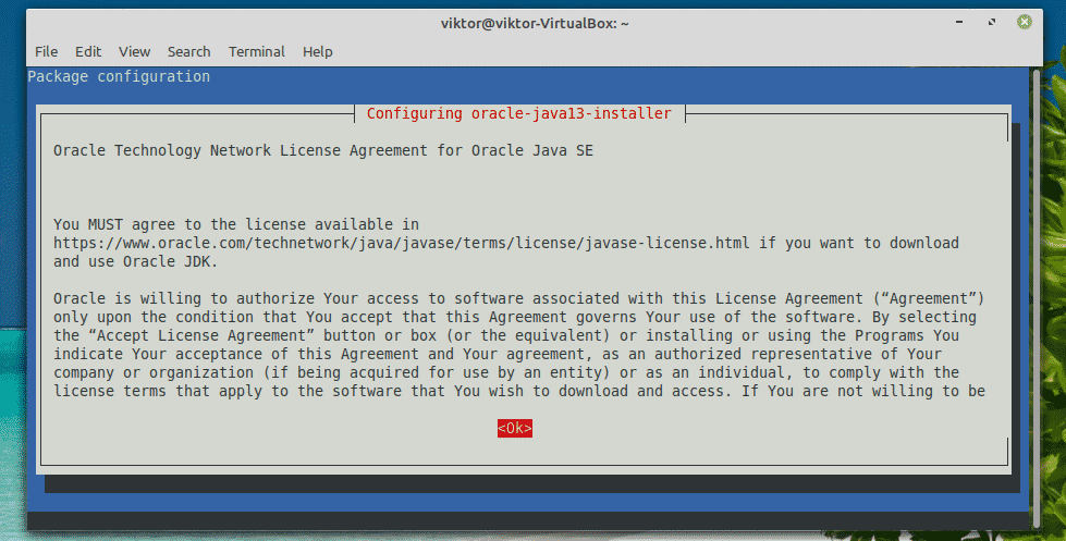 The installer script will start. Accept the license agreement. Select “Ok”.
