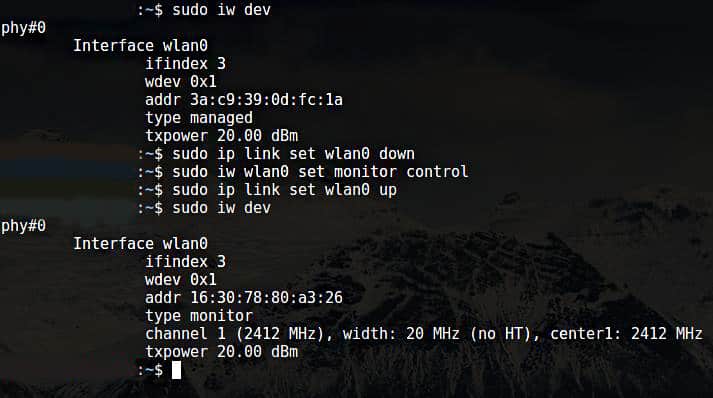 To access the traffic of other people, you will have to switch this over to Monitor Mode. You can switch iw to Monitor Mode by entering the commands given below: