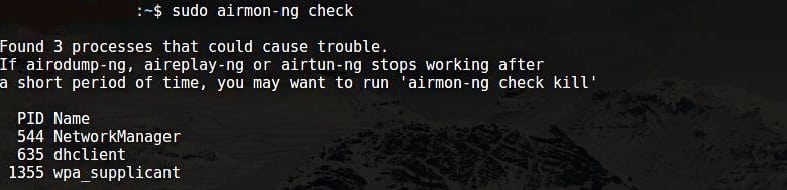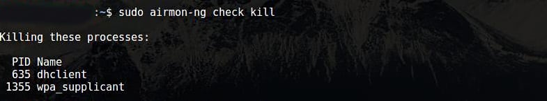 You will want to kill any process that can interfere with using the adapter in Monitor Mode. To do so, you can use a program called airmon-ng, simply entering the following commands: