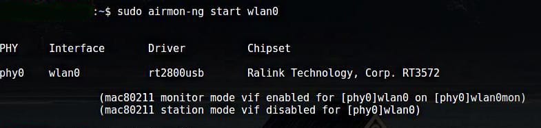 The next step is to enable Monitor Mode. Do so by entering the following commands: