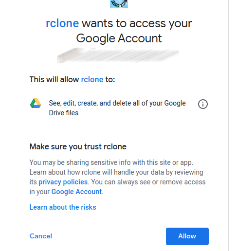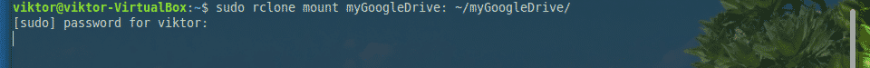 Now, tell Rclone to mount Google Drive on the folder.
