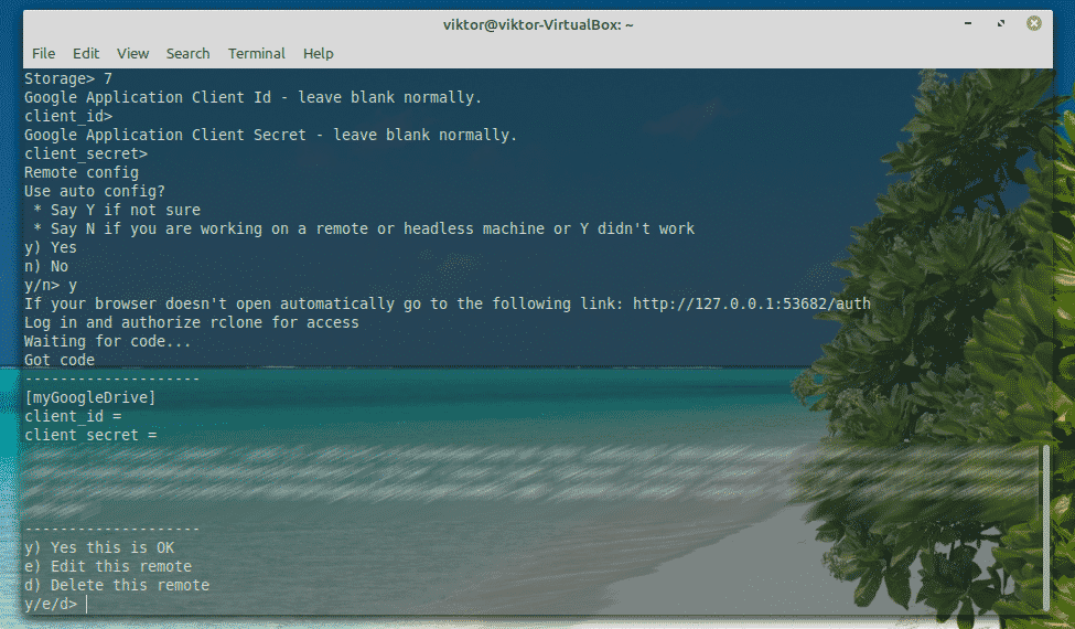 At this point, you can go back to the Rclone console. Enter “y”.
