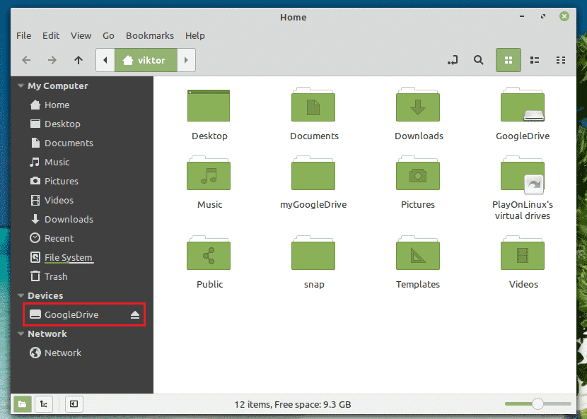 The mount is ready to be accessed from your file manager. Whatever you do with the directory will be updated with your Google Drive cloud storage.