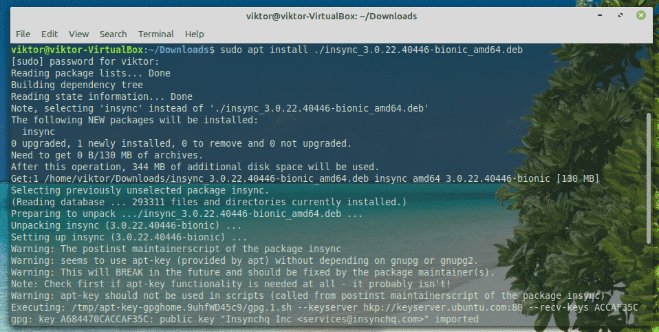 Once the download is complete, use APT to install the package.
