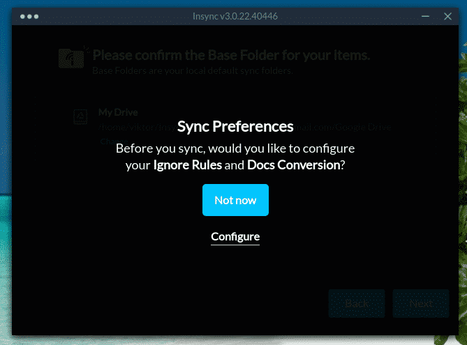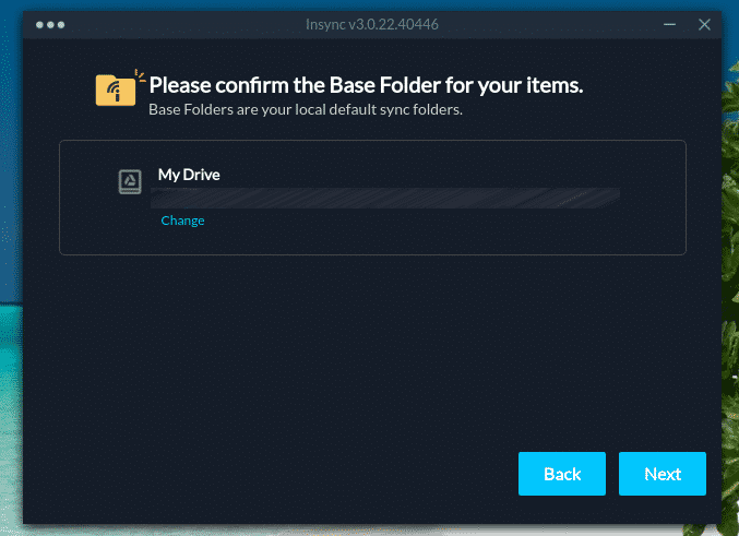 Once the installation is complete, manually delete the “~/Insync” folder.