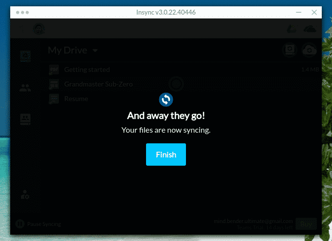 Sync is now in progress! Click “Finish”.