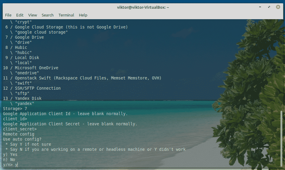 It’s time to select which service you want to use. In our case, we need Google Drive. Enter “7”.