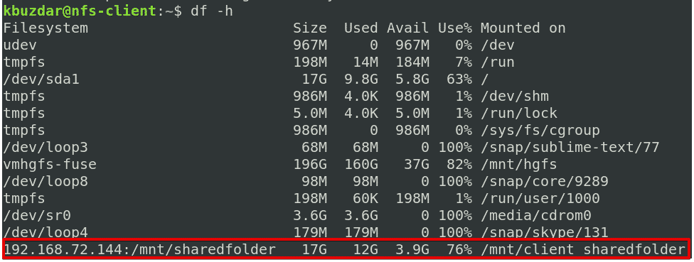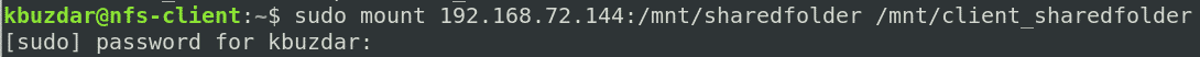 After mounting the NFS shared directory, you can confirm it using the following command in the Terminal: