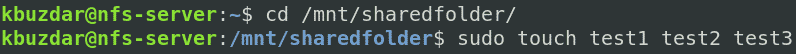 1. On the NFS server machine, open the Terminal and use the cd command to navigate to the NFS shared directory: