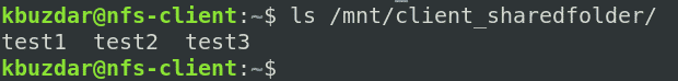 2. On the NFS client machine, verify whether the same files exist in the local mount point directory.
