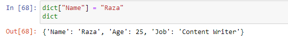 We want to change the particular value by updating the key ‘Name’. It will output the updated dictionary. Dictionary keys are immutable.