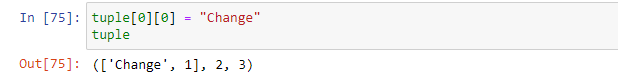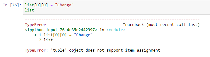 On the contrary, the list variable can’t be updated because it has a tuple on 0 index, which is mutable.