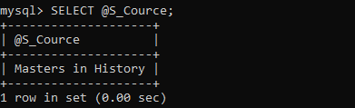 By calling the column ‘S_Cource’ again, you can see how we have a result ‘Masters in History’ regarding the recently provided subject, e.g., History.