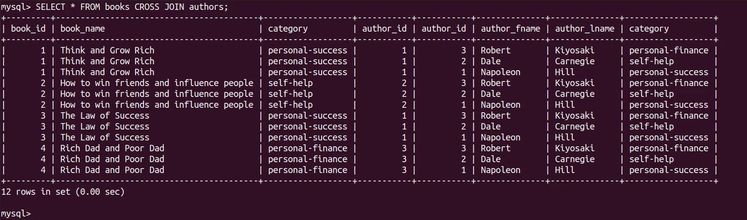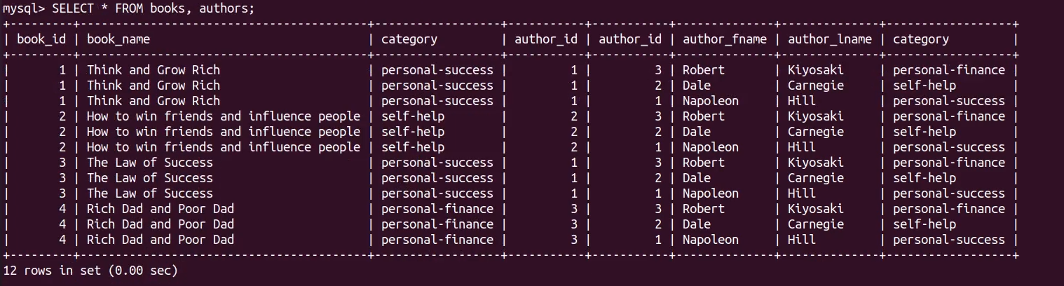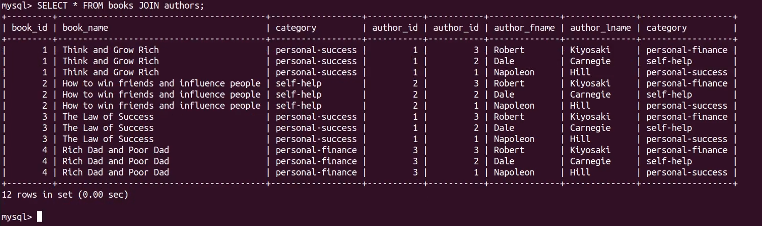 As you can see, we have all the columns from both of the tables without even providing a condition.