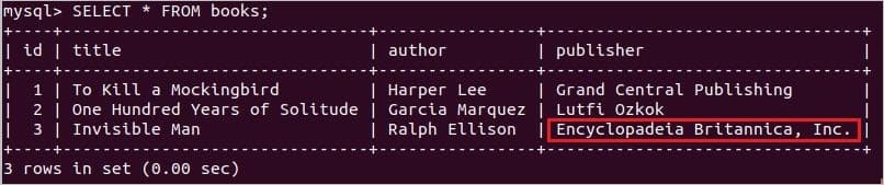 Any database table can be exported by using INTO OUTFILE statement. Suppose, I want to export the data of the books table. Run the following command to check the existing data of this table.