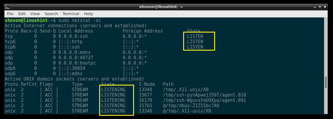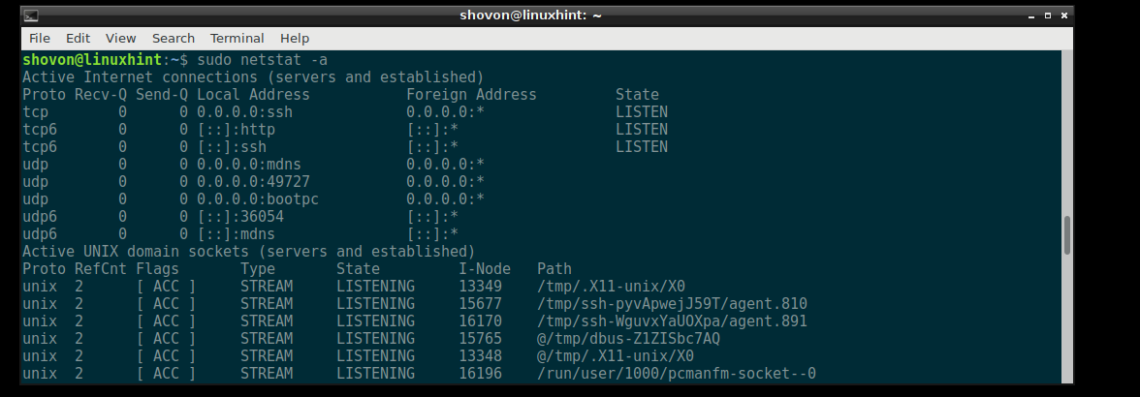 Listing All the Listening Ports and Sockets with netstat: