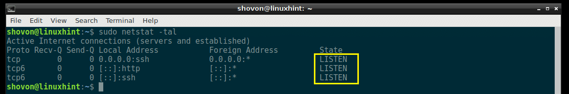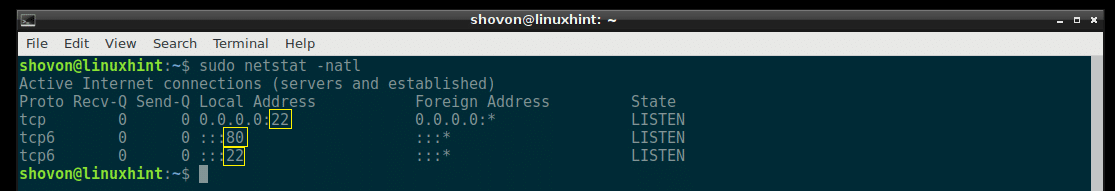 As you can see, all the TCP ports that are listening is listed.