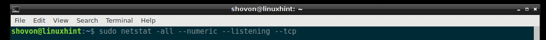 Listing All the Listening TCP Ports with netstat:
