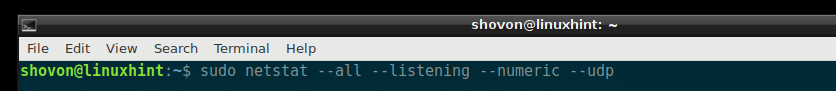 Listing All the Listening UDP Ports with netstat: