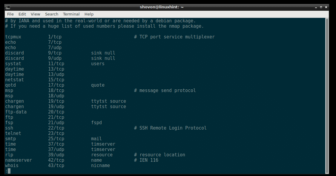You can open the service file /etc/services with the following command: