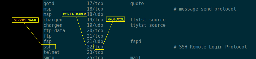 The /etc/services file contains a long list of service name, and the port number and protocol of that specific service that a client or server may use. Programs on Linux system such as netstat uses this file to resolve the port numbers to service names and vice versa.