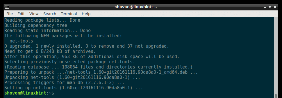 Now run the following command to install the net-tools utility on Debian 9 Stretch: