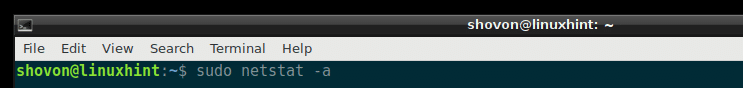 Listing All Ports and Sockets Using netstat: