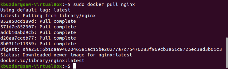 Step 2: Here, you will see the docker pull command for Nginx. Now, on your docker host, run the following Docker pull command on the terminal to download the Nginx latest image from the docker hub.
