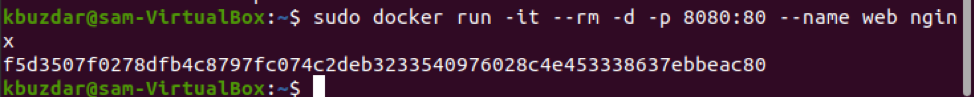 Next, you will attach the volume on the container ‘/usr/share/nginx/html’ to the present running directory where the helloworld.html program file is saved.