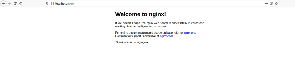 We have used the Nginx server port 8080 on the docker host system. After running the above command, you will see the following output window on browsing the http://localhost:8080 URL. The following displayed output shows that the Nginx docker is working properly.