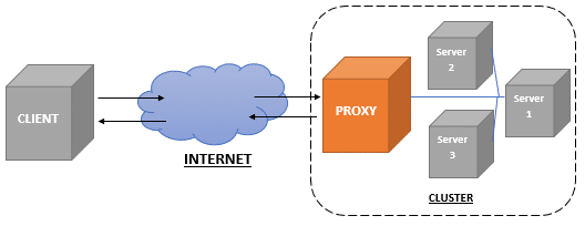 To recap, a proxy sends requests on behalf of one of more clients to any servers out in the Internet. A reverse proxy behaves in a similar fashion.