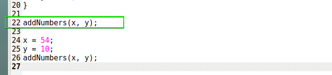 As you can see, a breakpoint is set on line 22 as well, just before the first addNumber() function is executed.