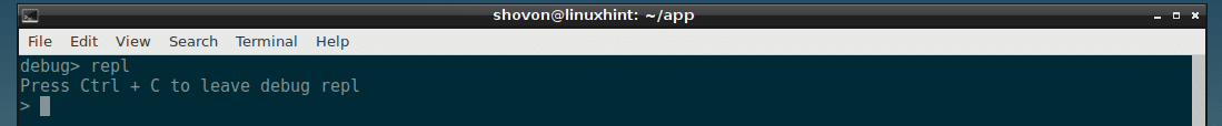 To exit REPL, press <Ctrl> + c. You should be back to the debugger.