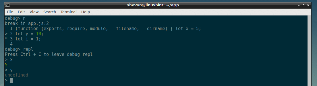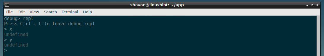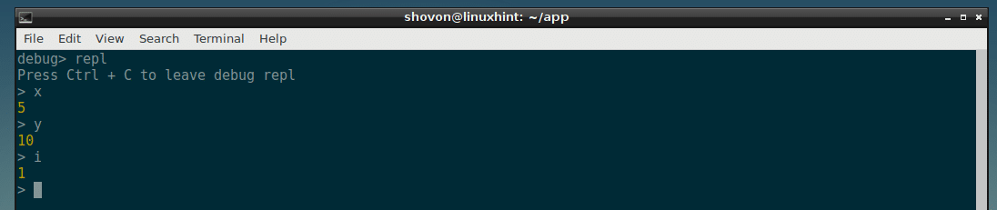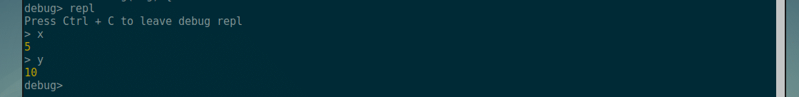 Now I can check the value of x and y from REPL and as you can see it is correct.