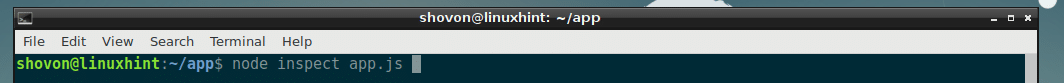 NOTE: On older version of NodeJS, you run node debug app.js instead to start the NodeJS debugger.