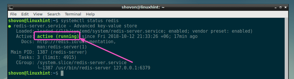 As you can see, redis service is running.