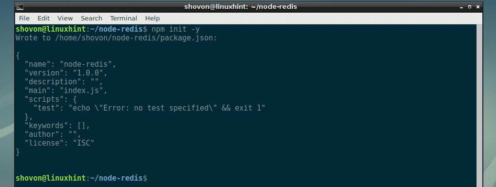 First, create a project directory (let’s call it node-redis) with the following command: