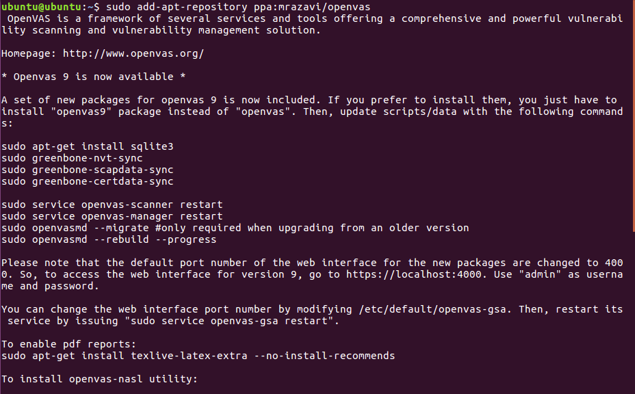 OpenVAS is the open source version of Nessus, which emerged after Nessus became a closed source scanner. Nessus was among the first vulnerability scanners (of course Nmap is older and it can be used to scan holes as well). OpenVAS. It is considered one of the best security scanners, in this article I will show you how to install it on Ubuntu and give you a introduction to getting it setup and running your scans on Ubuntu systems. Lets get started.