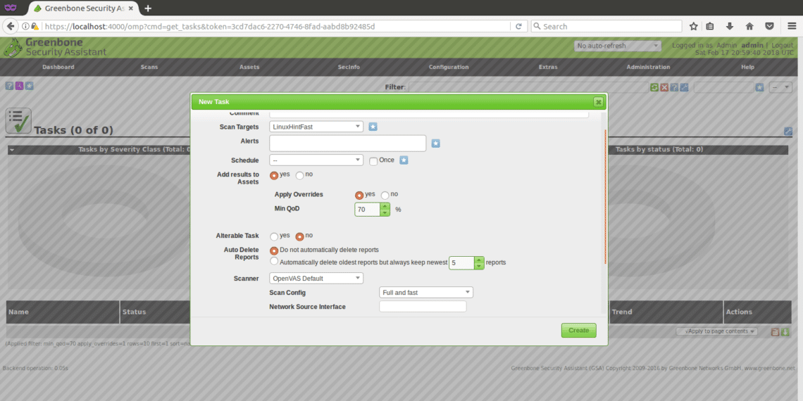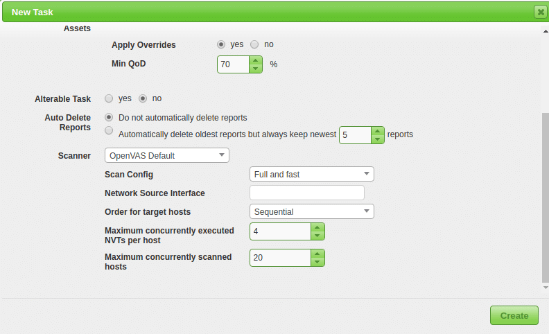 MIn QoD: This mean “Minimal quality of detection” and with this option you can ask OpenVas to show only real potential threats. If you set 100% and Openvas detects a hole, it is for sure a functional security hole, an exploitable one, for this tutorial I left the default 70%.