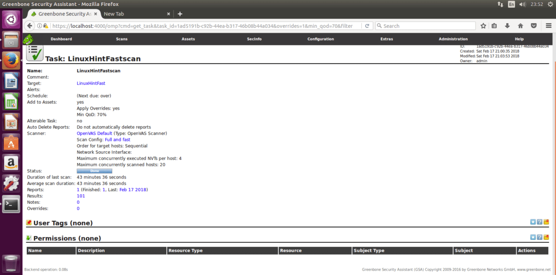 Scan Config: This option is to select the intensity of the scan, to try Openvas select a fast scan before going with a real target. The most deep and ultimate scan may take days…