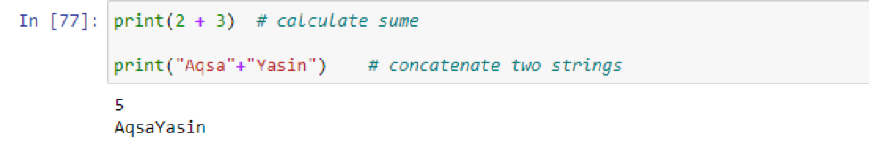 For instance, the + operator can add two numbers mathematically, combine two lists, or concatenate strings. Here is a simple python program to show a glimpse of the + operator used for addition and concatenation.