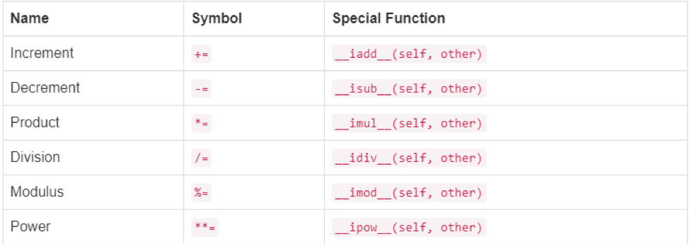 Here are the details of some magic functions for overloading the assignment operators in python code.