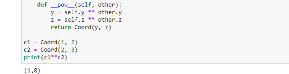 We overloaded the power operator while using the power magic function; we got 1, 8.