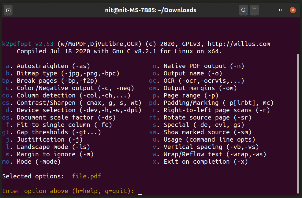 $ ./k2pdfopt file.pdf
