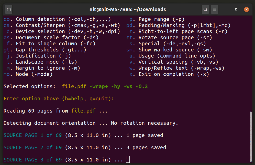 Run the command below to launch K2pdfopt: