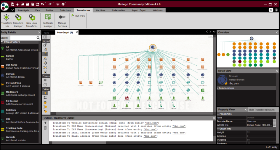 Maltego was created by Paterva and is utilized by law enforcement, security experts, and social engineers for gathering and dissecting open-source information. It can gather large amounts of information from various sources and utilize different techniques to produce graphical, easy-to-see outcomes. Maltego provides a transformation library for the exploration of open-source data and represents that data in a graphical format that is suitable for relation analysis and data mining. These changes are inbuilt and can likewise be altered, dependent on necessity.