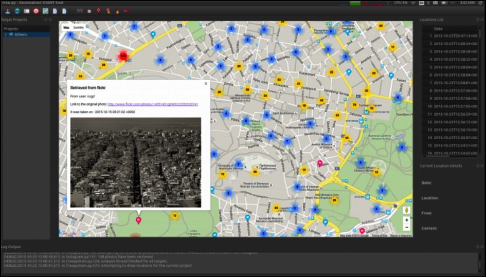 Creepy is an open-sourced intelligence platform for Geolocation. Using various social networking sites and image hosting services, Creepy gathers information about location tracking. Creepy then displays the reports on the map with a search methodology based on the precise location and time. You can later view the files in depth by exporting them in CSV or KML format. Creepy’s source code is available on Github and is written in Python. You can install this awesome tool by visiting the official website: